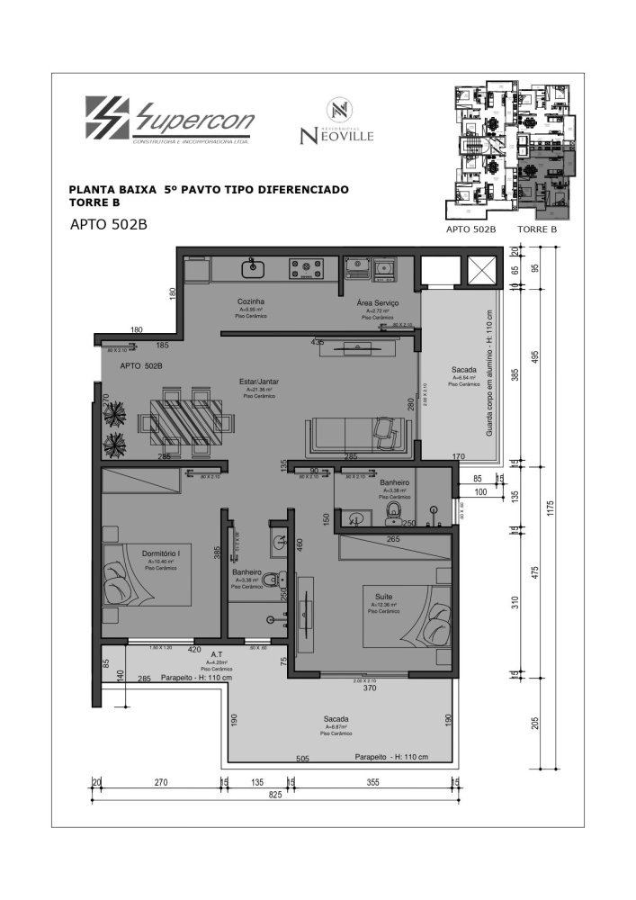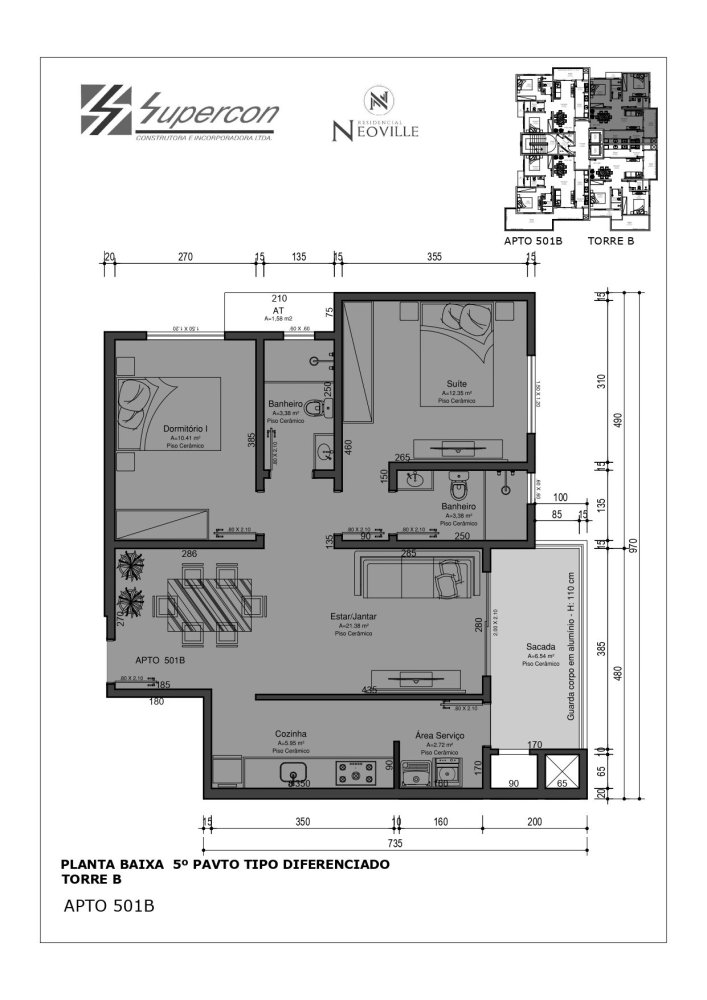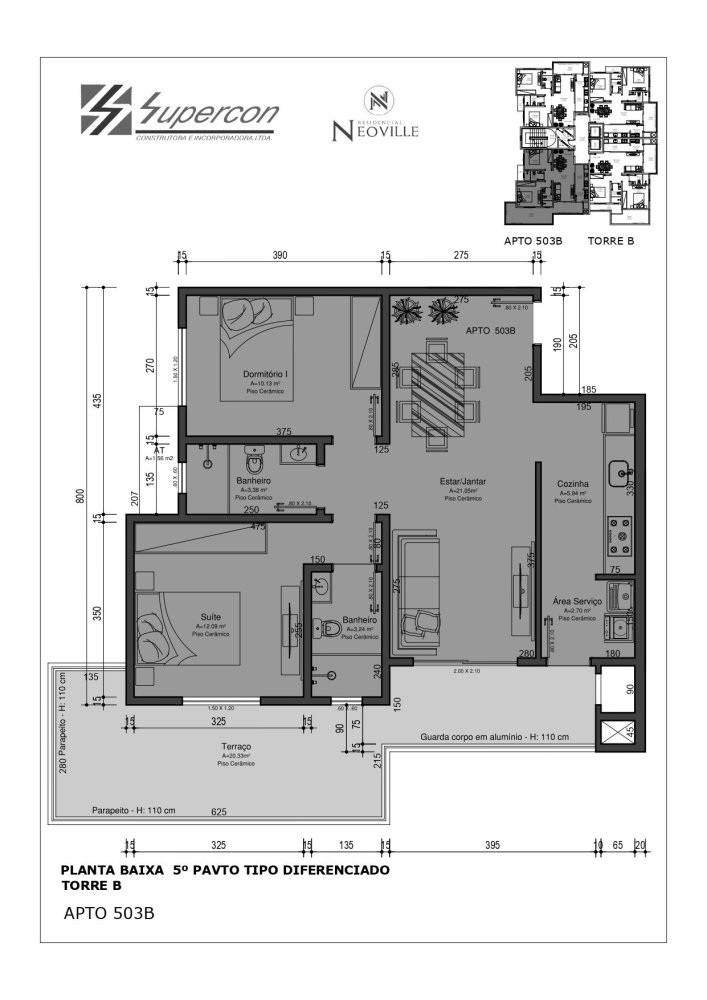 Área Total: 101,71 m² (R$ 8.127/m²)Área Privativa: 76,70 m²