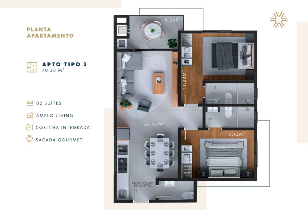 · Apto final 02: 70,38 m²