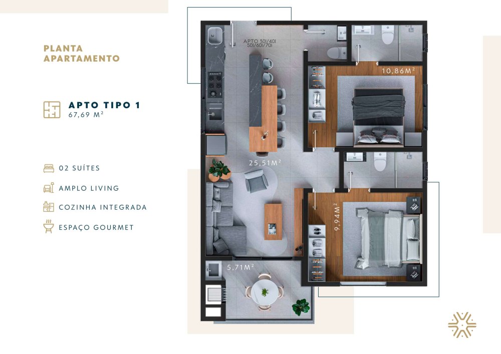 · Apto final 01: 67,69 m²